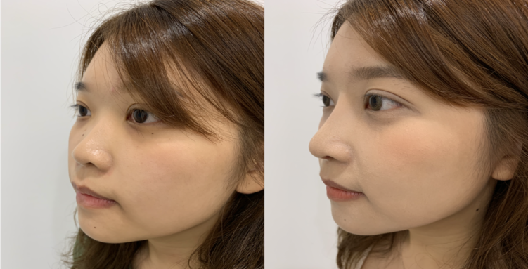 在幫她詳細的諮詢檢查後,我建議應該要先改善她的鼻型外觀來作為矯正「中臉凹陷」的第一步。鼻型立體了,整個臉部的視覺效果都會大幅度改善。